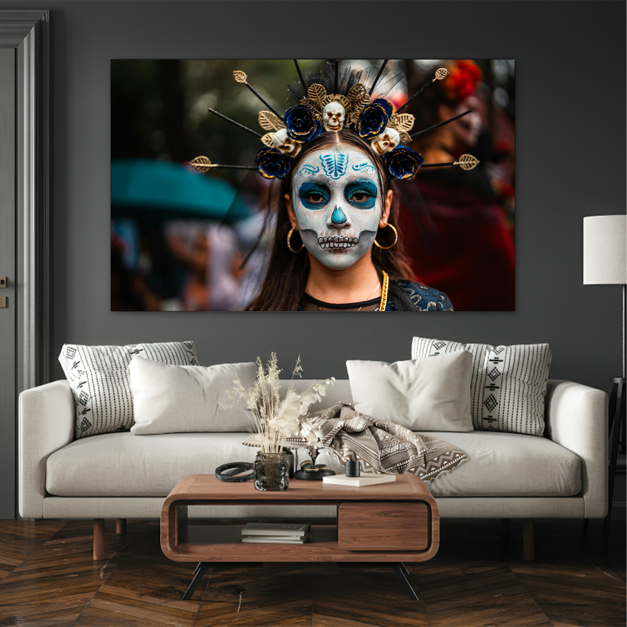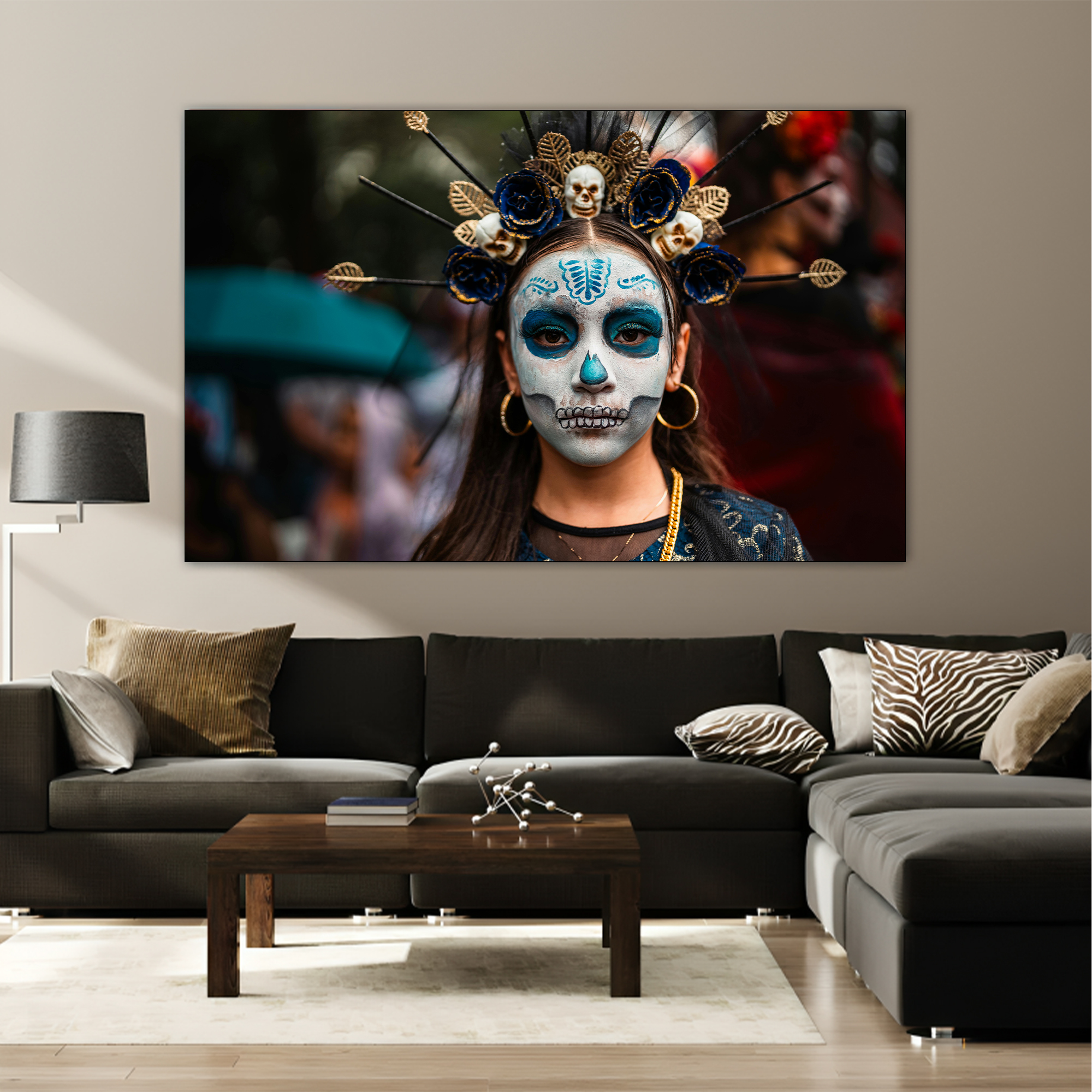 Skull with Beauty Canvas painting with frame Big Size Wall Art for living room,Bedroom,Drawing room,Hotels